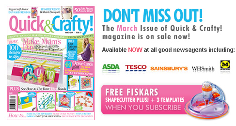 |  | |  | Come and visit us at the Hobbycrafts show! Meet the teams behind your favourite magazines plus get some fantastic offers on current magazines and some amazing subscription deals! | Special feature at the show - Turn your Hobby into a Career | Stampin' Up! offers arts and crafts enthusiasts the chance to combine crafting skills together with home-based employment. Visit the Crafts Beautiful and Quick & Crafty! stand to find out more about hosting or attending parties, win some fantastic Stampin' Up! goodies and find out how you could have the chance to showcase your work in a forthcoming article in Crafts Beautiful magazine... For more information click here | | | |  | | | | | | Congratulations... Congratulations to forum member, Beckyp87, who is the winner of our latest forum challenge! We loved the way that despite having only limited resources at her university accommodation, beckyp87 used her imagination and sense of fun to create two wonderful makes, including a fantastic 1920s themed card, and a fabric painted kitty kat mask. Jintz, who hosted the challenge said, "This was a very difficult decision to make as all the entries were fantastic. Thank you to everyone who took part" | | |  | | | | |  | Forum Member of the Month Congratulations to Aims who has been crowned member of the month for February. She's always helpful, promotes discussions, shares tips and tricks, welcomes newbies, takes part in challenges and posts lots of inspiring makes! To say thank you, we've sent her a bumper stash of goodies. If you want to be in with the chance of winning, all you need to so is become a member of our fab forum. The person who we think has contributed the most by helping newbies, sharing crafting expertise and generally being a brilliant member will win...it's as simple as that! So get posting! | Make It Show 2009 We're all set to launch into the new crafting season with Make it 2009! Checkout what the biggest exhibition for crafters in the South has to offer and pop over to say hello at stand F8! Click here for more information. |  | | |  | "Dear Elizabeth, I thought you'd like to see a present I made for my 80-year-old mum for Mother's Day. We like to go on day trips as often as possible, but can never decide where to go! When my dad was alive, he and my mum wrote place names on scraps of paper and drew straws to decide where to visit. So for my gift I made 'destination sticks'. They are lolly sticks, covered with pieces of pretty paper, sanded and stamped with a few local town names. I drilled holes in the ends and tied fancy ribbons, yarn and braids. She loved them, but as predicated said, 'Ugh, I don't want to go there!' after making the first draw!." Heather Hannant , Kettering | | | | Write to us! More reader creations are featured in Quick & Crafty! Magazine To have your creation considered email your letters and good quality pictures to: elizabeth.hudson@aceville.co.uk | | |